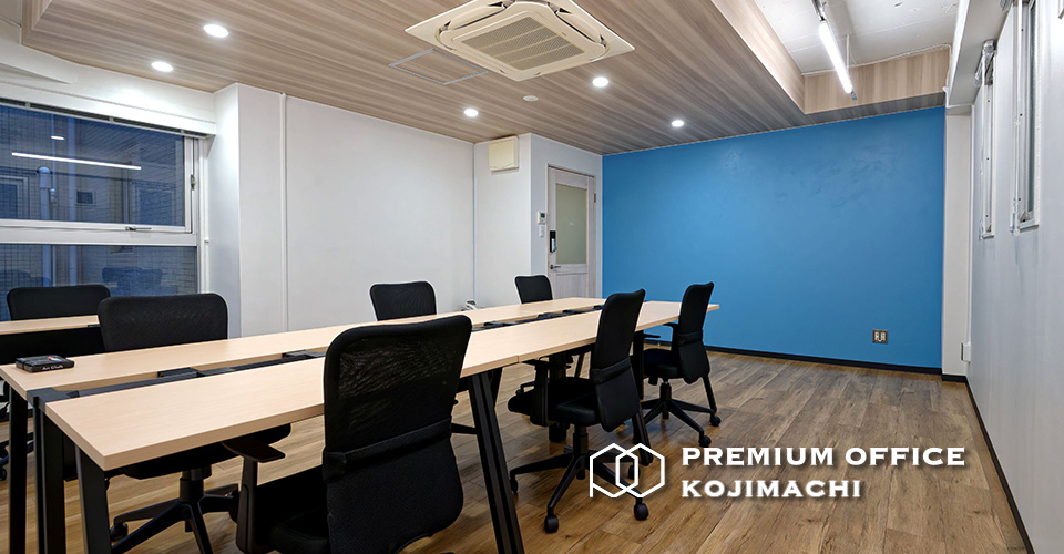PREMIUM OFFICE 麹町は、他の施設と異なり、通常の賃貸契約のやや広めのスモールオフィスとシェアスペースで構成。