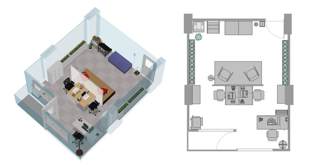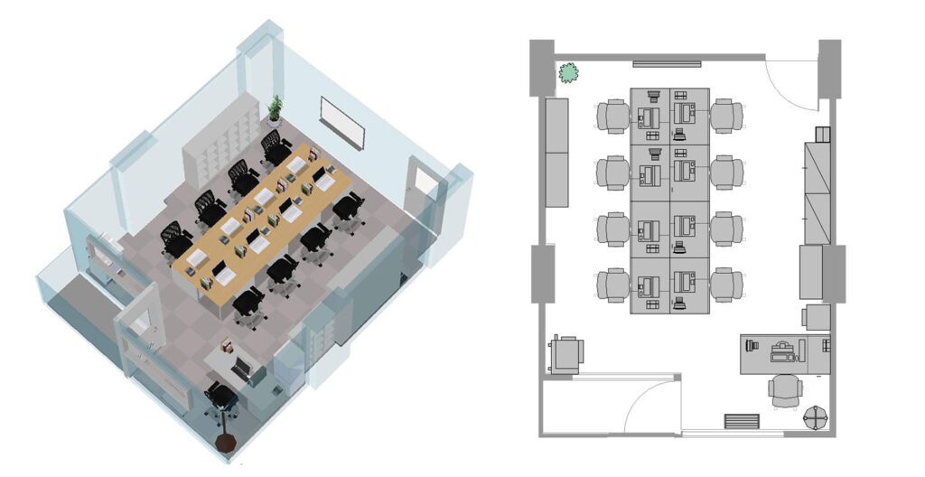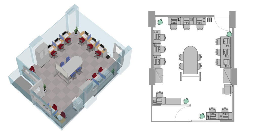 デスク配置や収納、動線を純粋に業務効率のためだけに設計できるため、